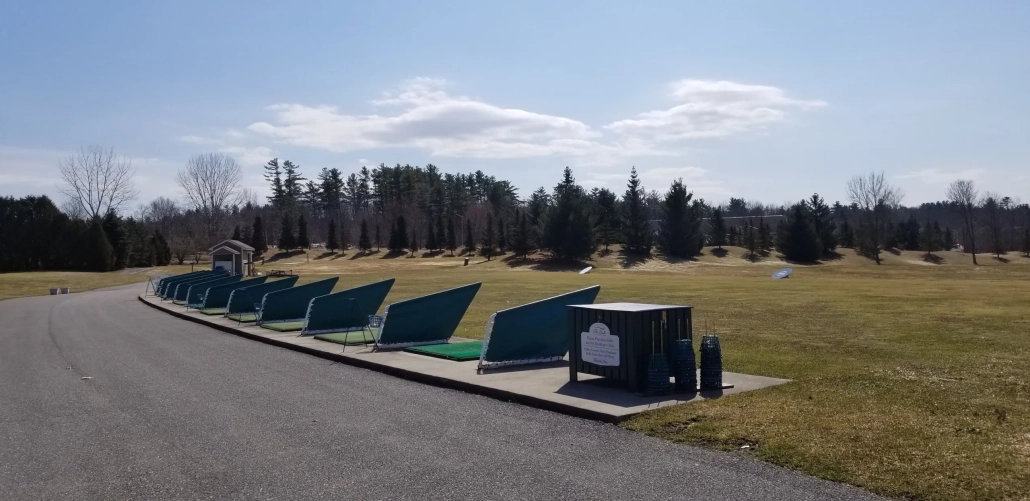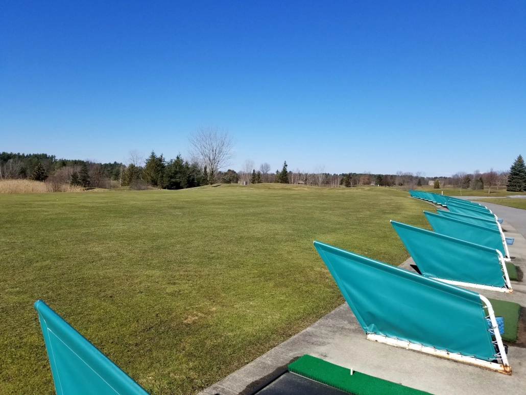 The Practice Facility features a 20-station artificial turf hitting area featuring Fiberbuilt hitting mats, a full bentgrass teeing area, two chipping and putting practice greens, a 10-20-30 & 40 yard short-game area and a practice bunker. The driving range features five target greens with distances ranging from 100 yards to over 275 yards. The grass teeing area is open Thursdays, Fridays and Weekends starting May through October 4, weather permitting. Artificial Fiberbuilt hitting mats are used on other days.